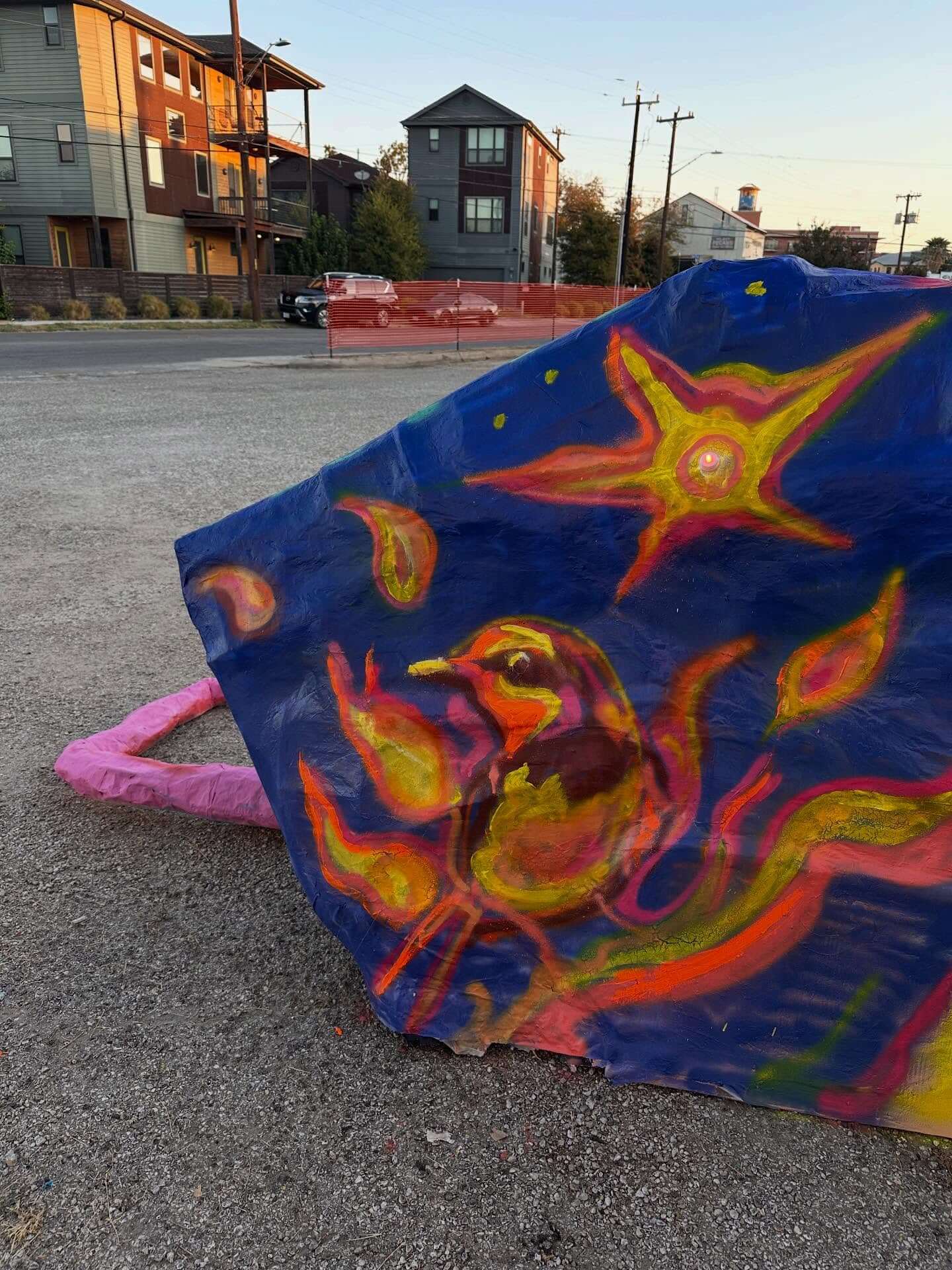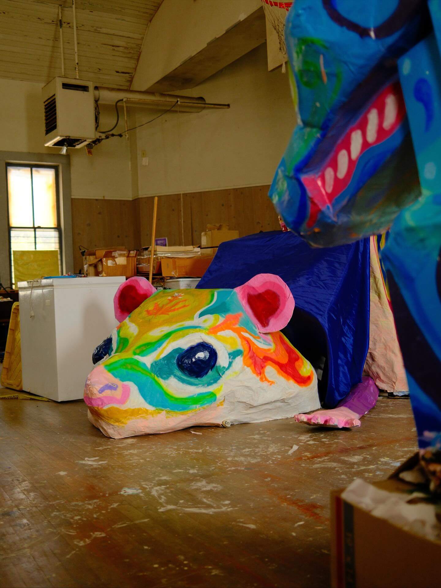 For our installation, we crafted a large paper mache sculpture made mostly from recycled materials.